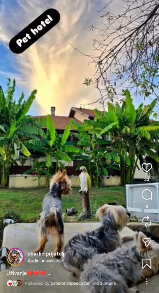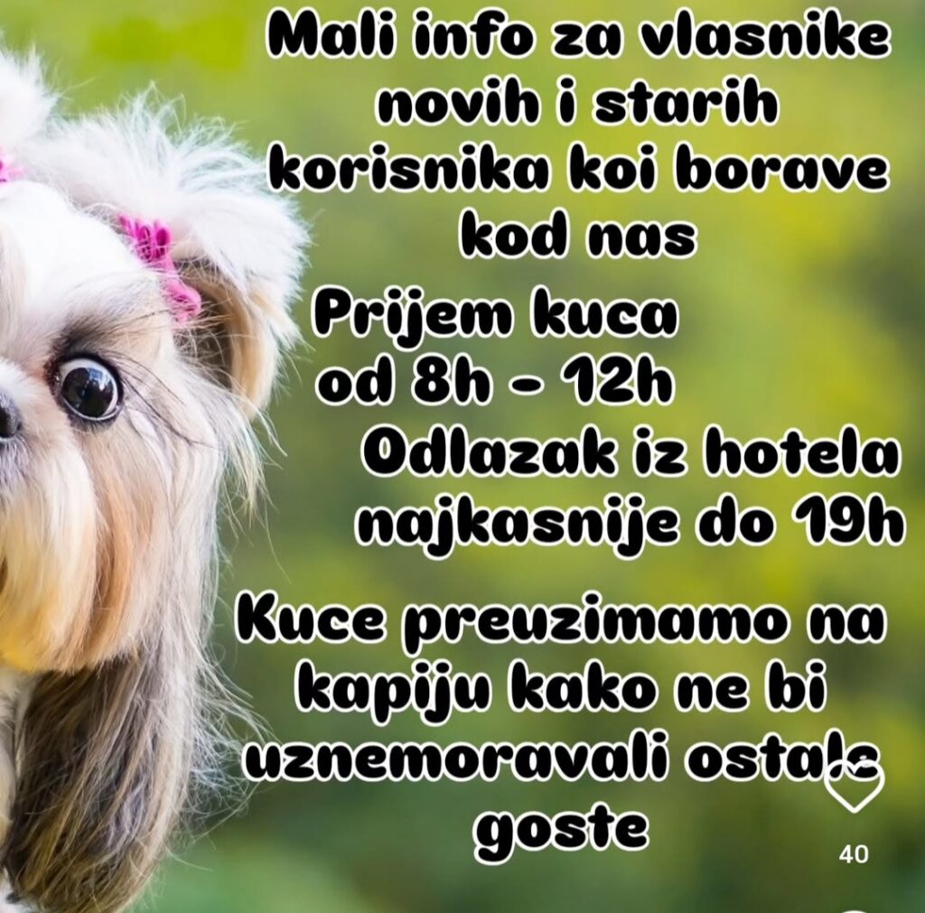 Kuce se nikada ne ostavljaju same, imaju dnevni raspored , animiraju se, rade se korekcije ponašanja ukoliko vlasnik to od nas traži. Za to se naplaćuje dodatno i po dogovoru.